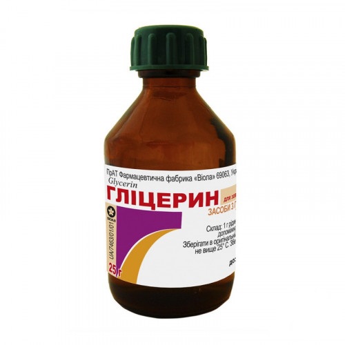 Состав и форма выпуска: Глицерин — флаконы по 25, 30, 50 и 100 мл.